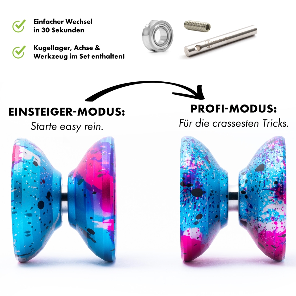 Its built-in fingerspin zone helps you land those tricks with ease, and the included German-language video course (50+ tricks) walks you step-by-step from your first throw to unresponsive play – with all accessories included.