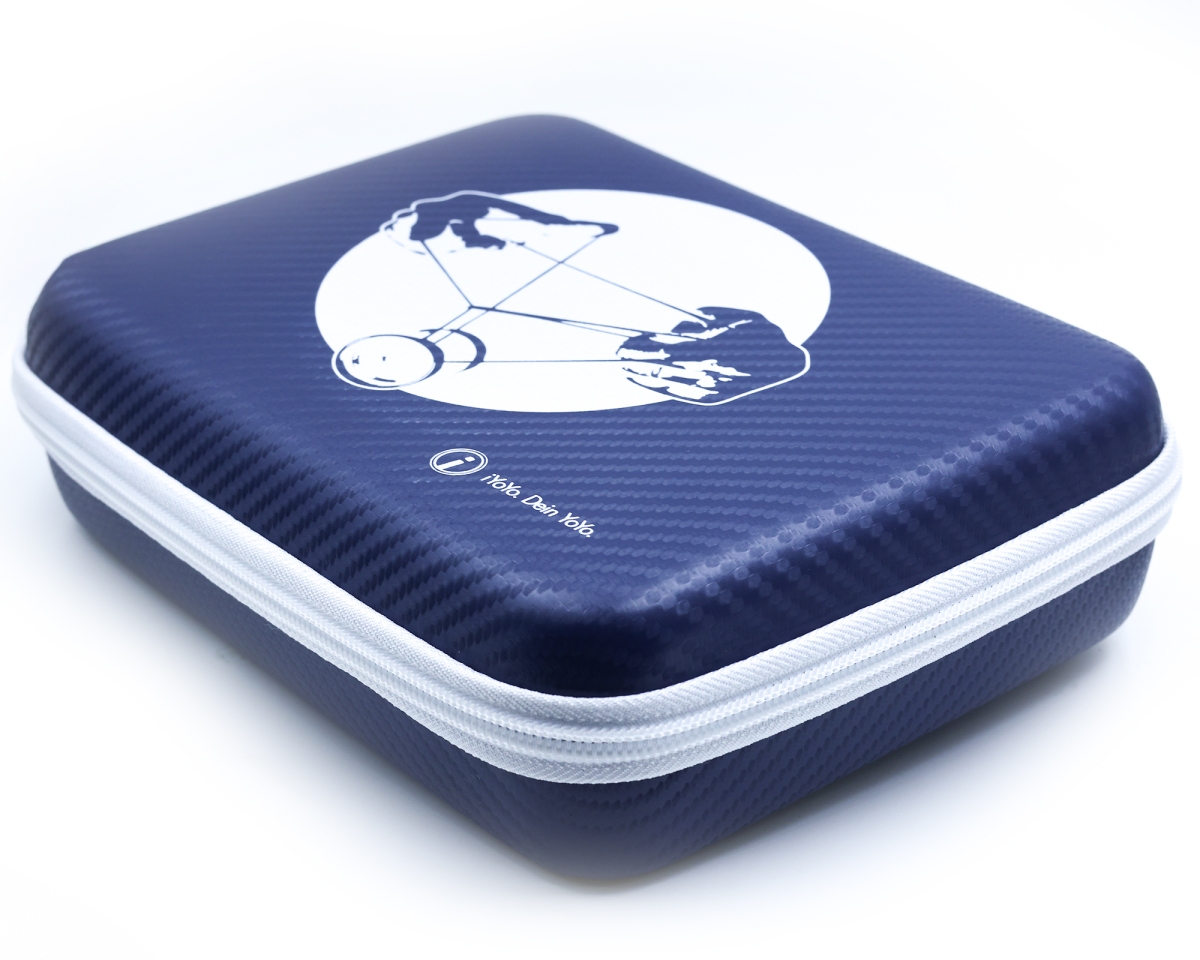 Das äußere Design kombiniert ein edles Carbon-Blau-Muster mit dem stylischen „Playing Hands“-Logo – ein echter Hingucker für alle, die mit YoYo mehr verbinden als nur ein Spielzeug. Der hochwertige Reißverschluss rundet das Case funktional ab.